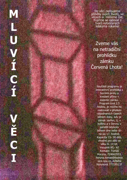 Budeme si vyprávět nejrůznější příběhy věcí, které jsou na zámku. Zamyslíme se nad tím, co pro nás naše věci znamenají. Podrobně si prohlédneme detaily, některé si zkusíme nakreslit.